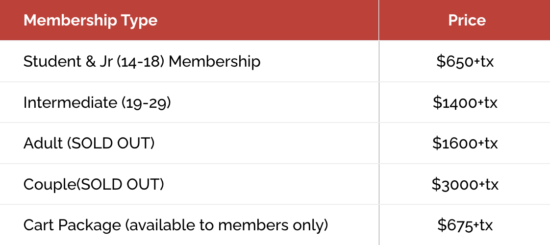 2026 Season Membership Pricing
